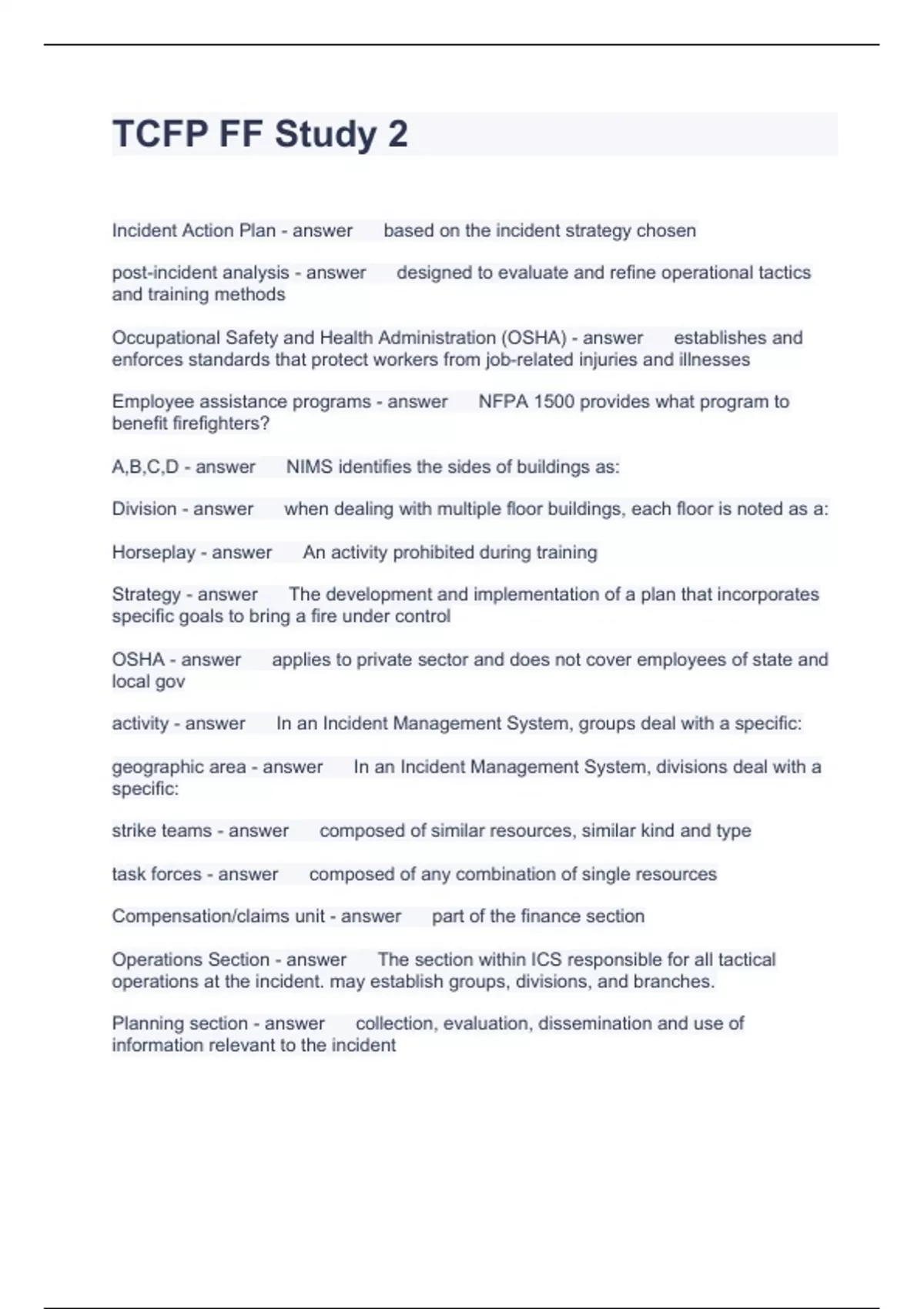 TCFP FF Study 2 Questions and Answers 100% Solved