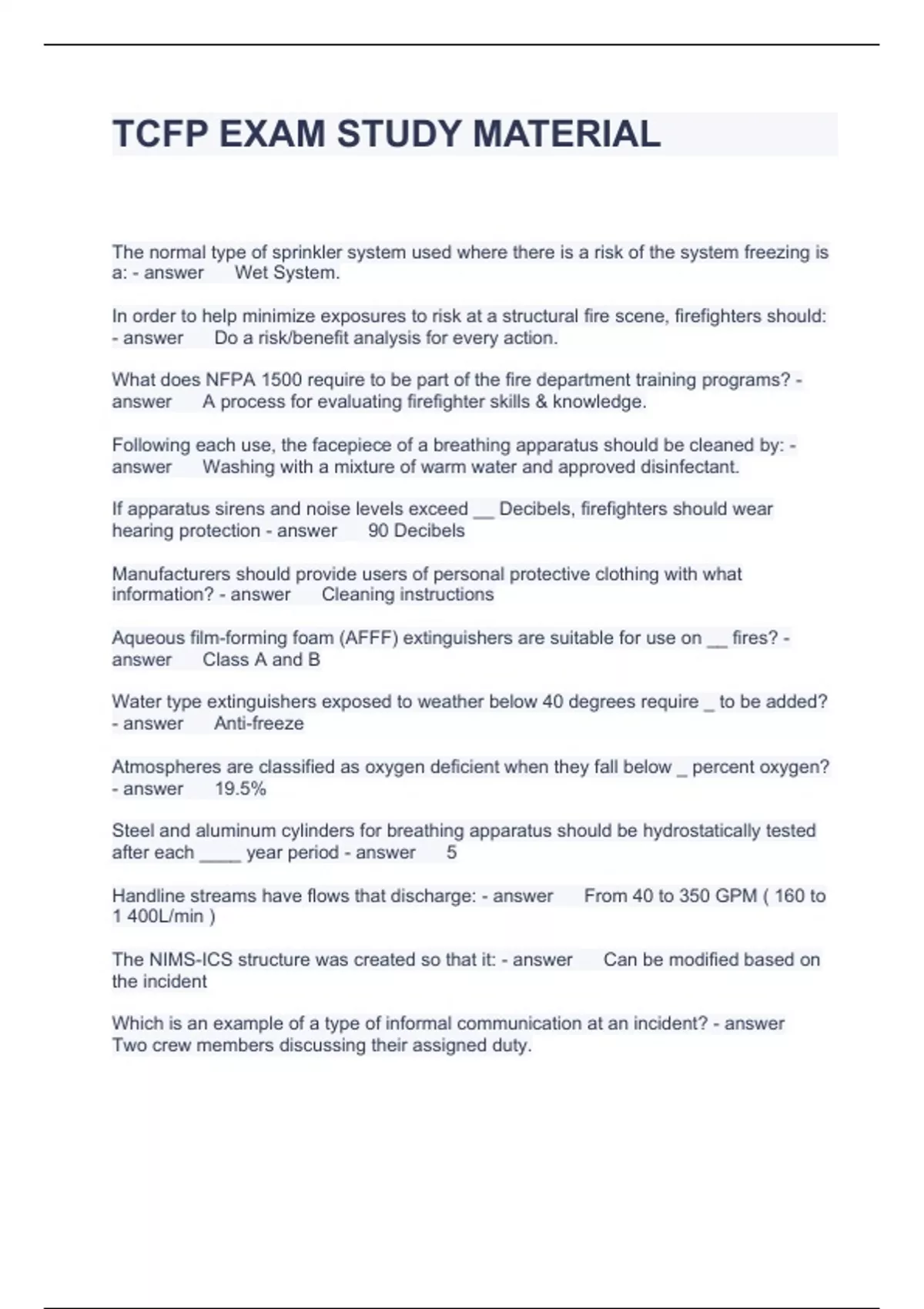 TCFP EXAM STUDY MATERIAL