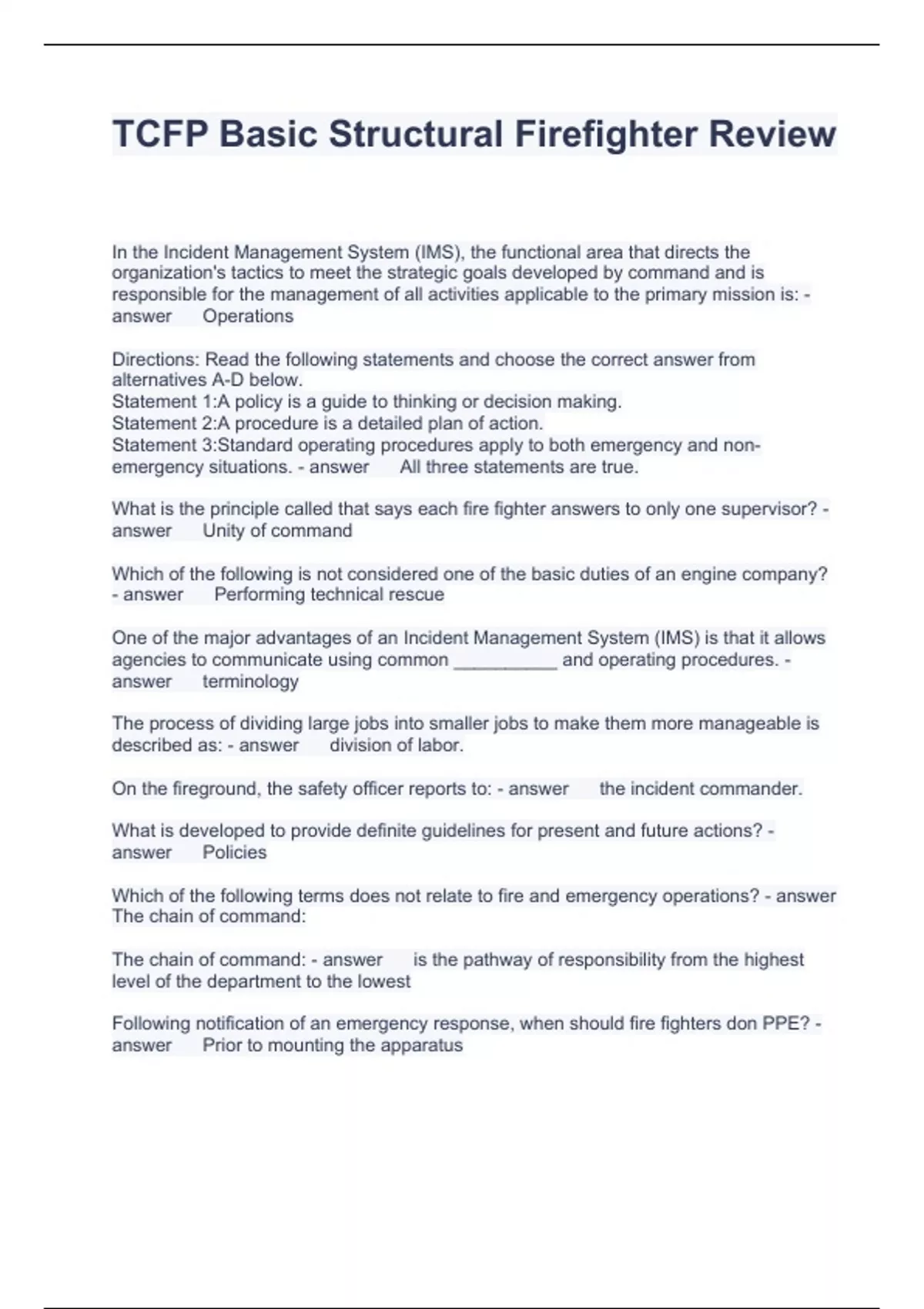 TCFP Basic Structural Firefighter Review Questions and Answers Graded A+