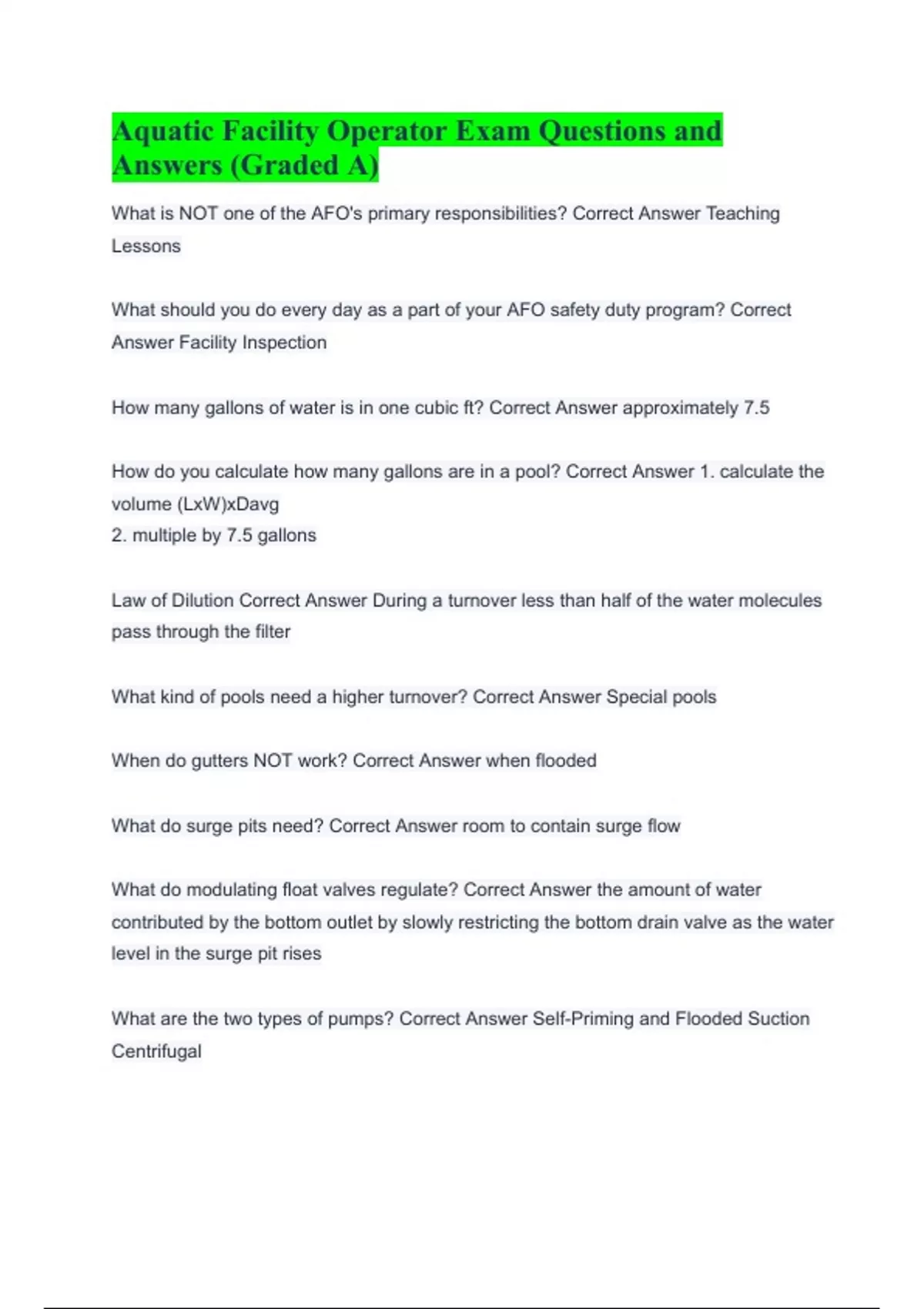Aquatic Facility Operator Exam Questions with Verified Solutions 2024