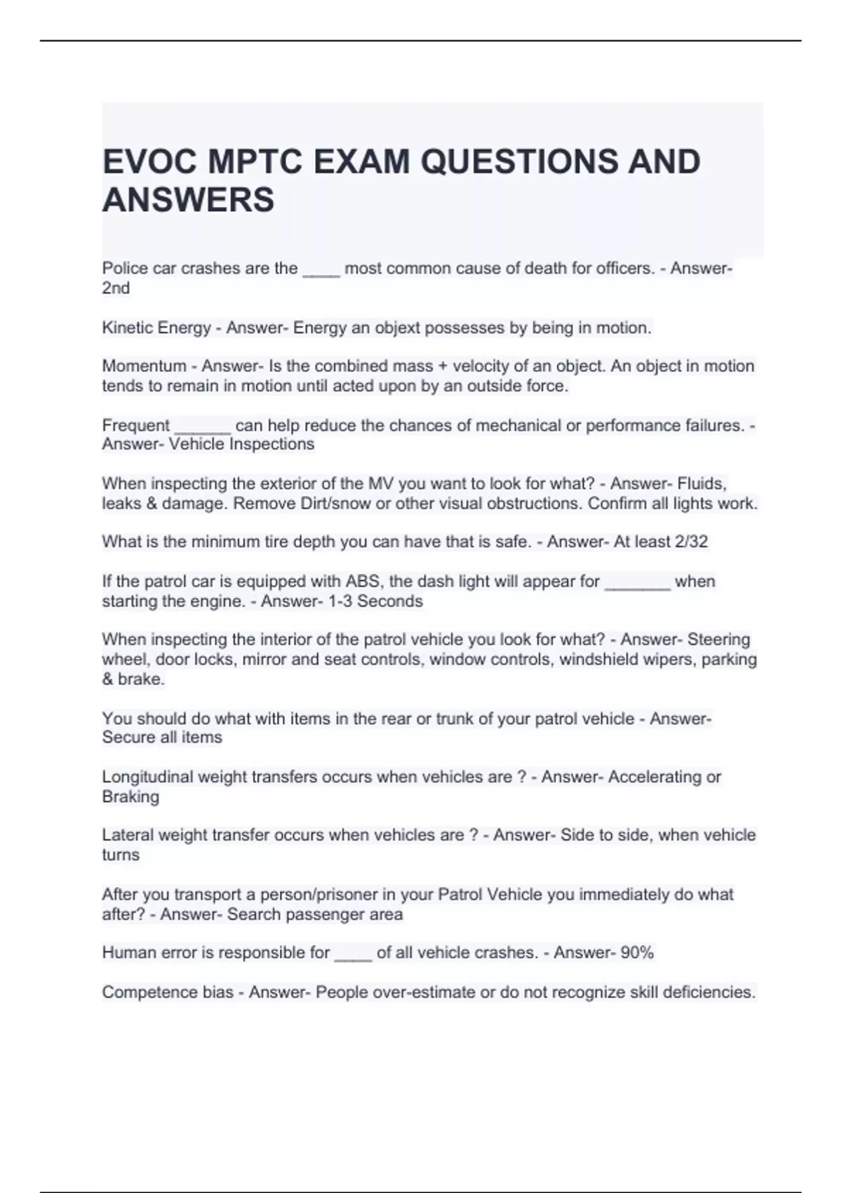 EVOC MPTC EXAM QUESTIONS AND ANSWERS