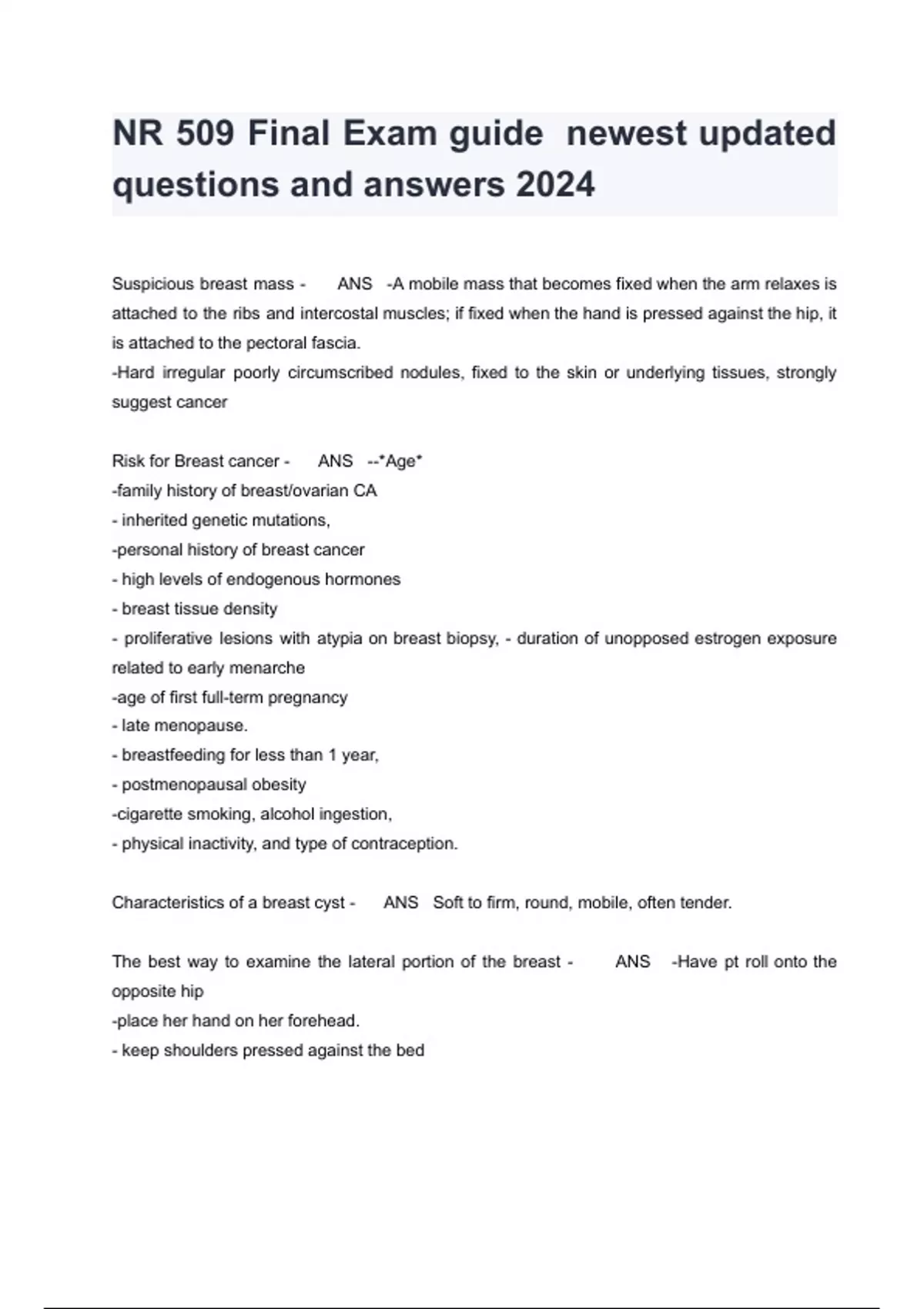 nr 509 final exam guide newest updated questions