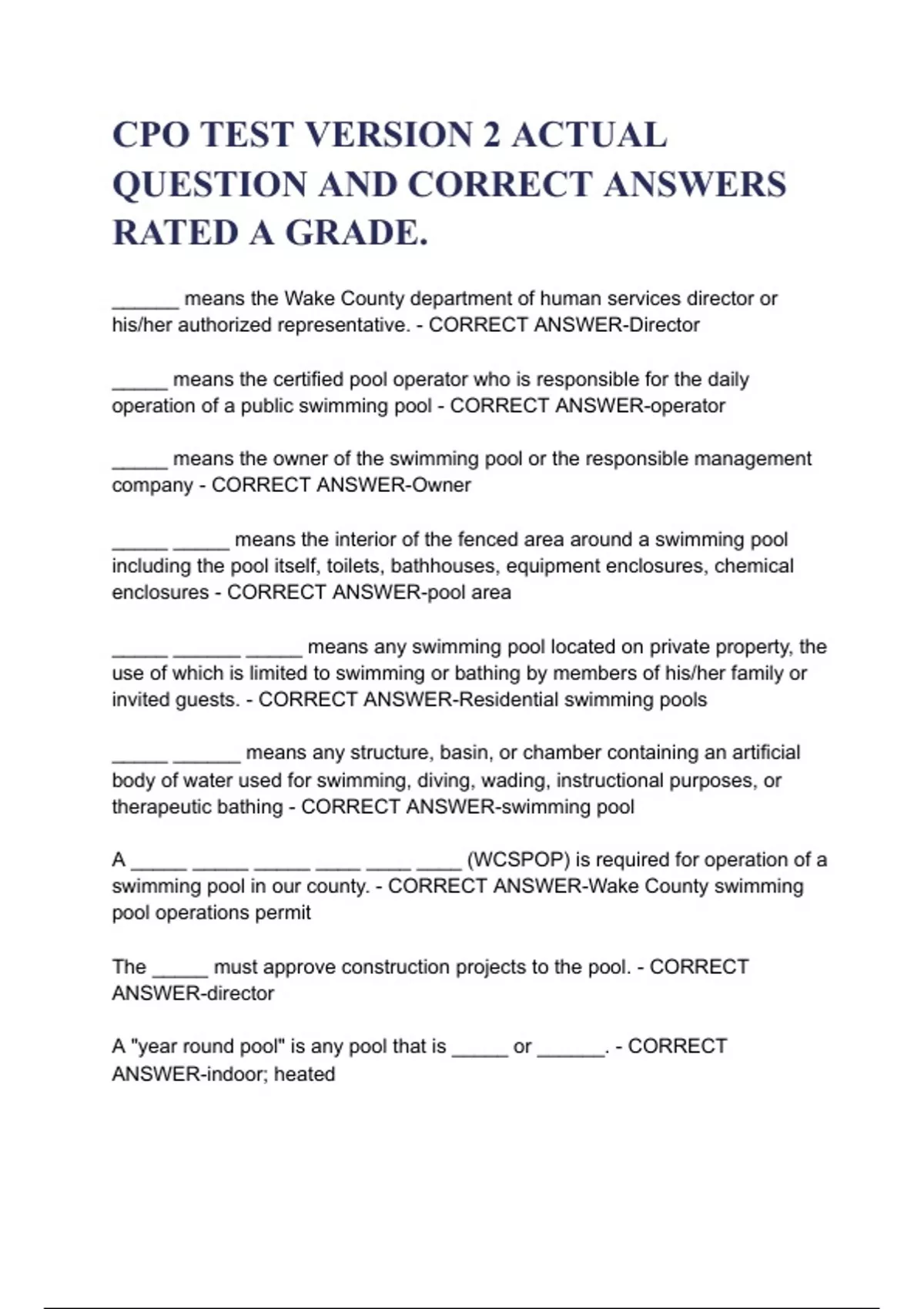 CPO TEST VERSION 2 ACTUAL QUESTION AND CORRECT ANSWERS RATED A GRADE.