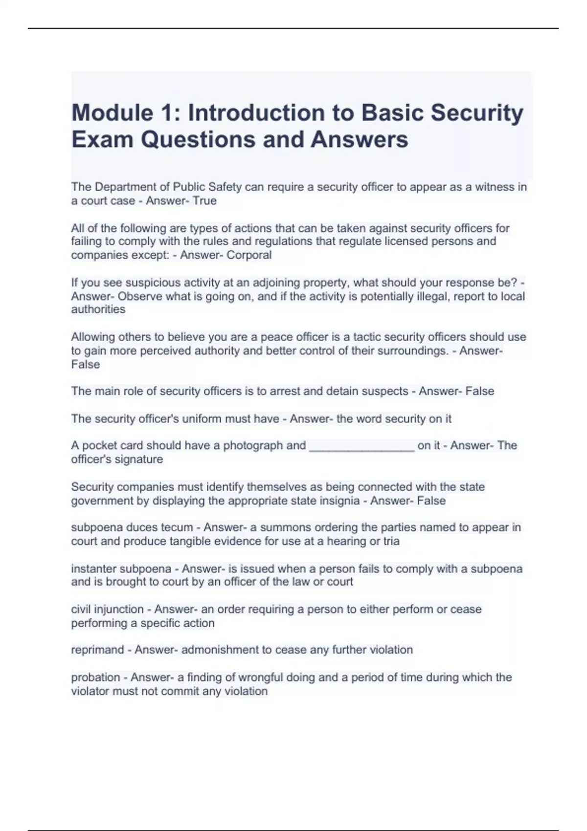 Module 1 Introduction to Basic Security Exam Questions and Answers- Graded A