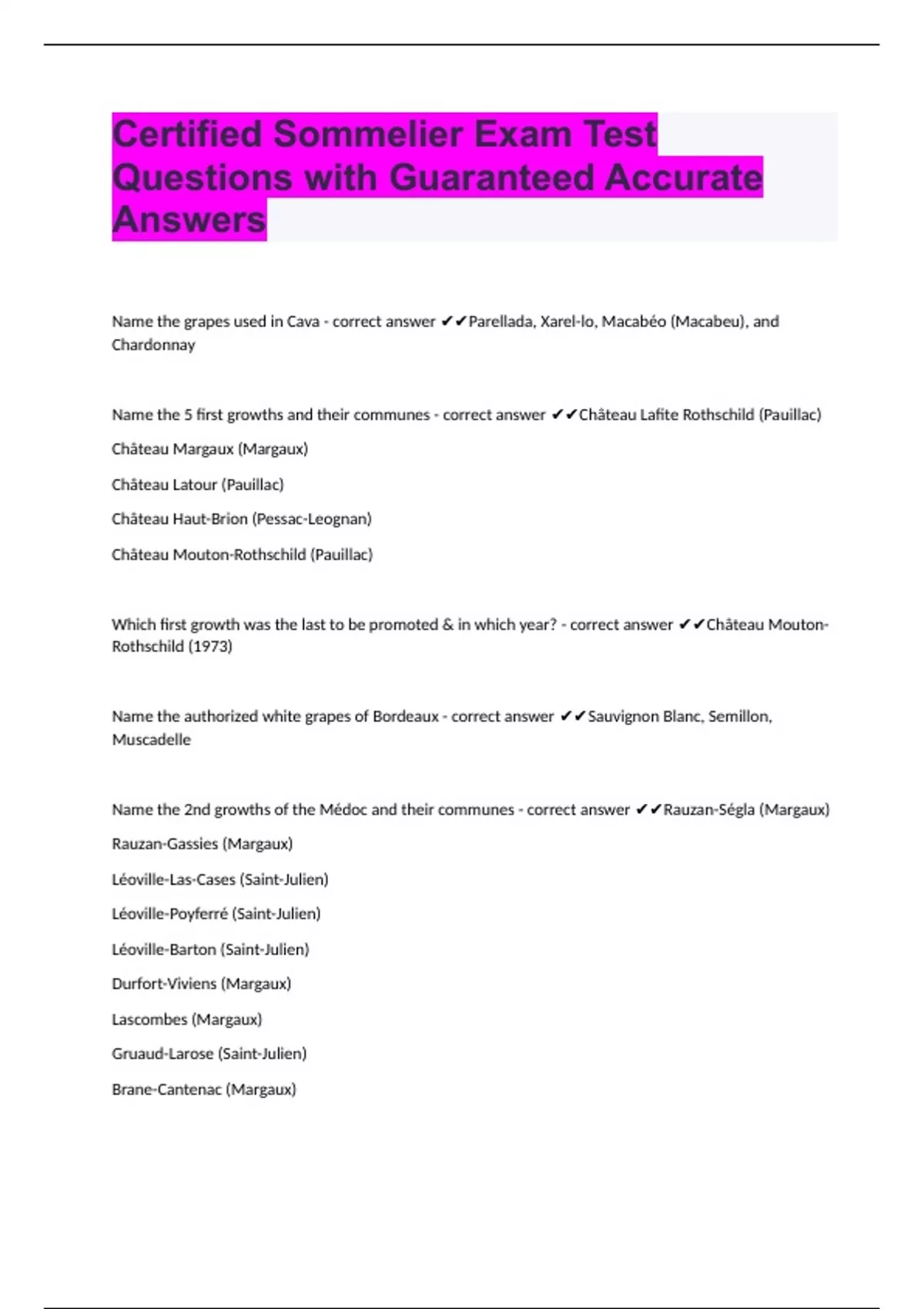 Certified Sommelier Exam Test Questions with Guaranteed Accurate Answers
