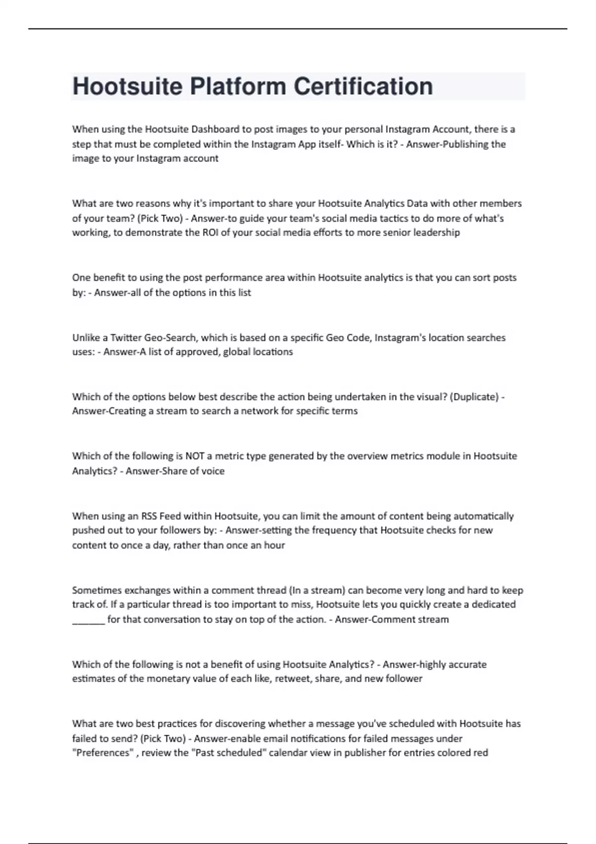 Hootsuite Platform Certification Questions With Correct Answers!!