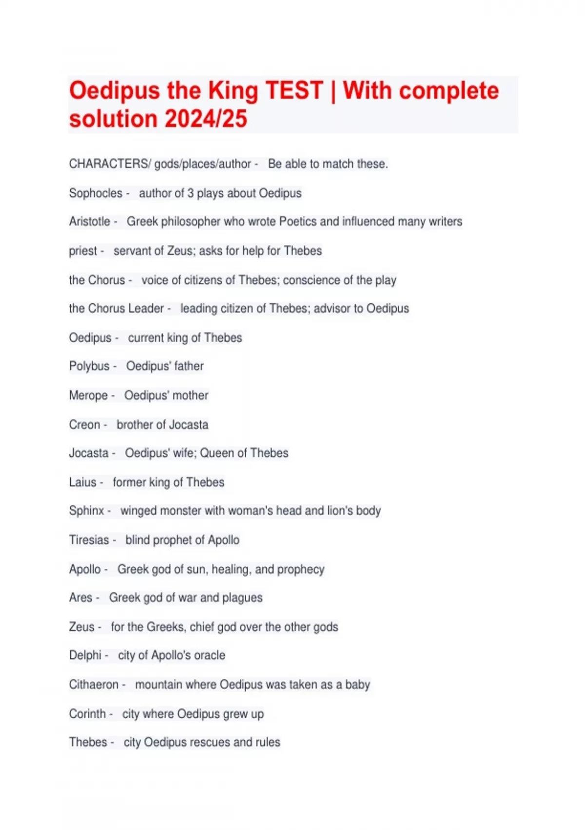 Oedipus the King TEST | With complete solution 2024/25