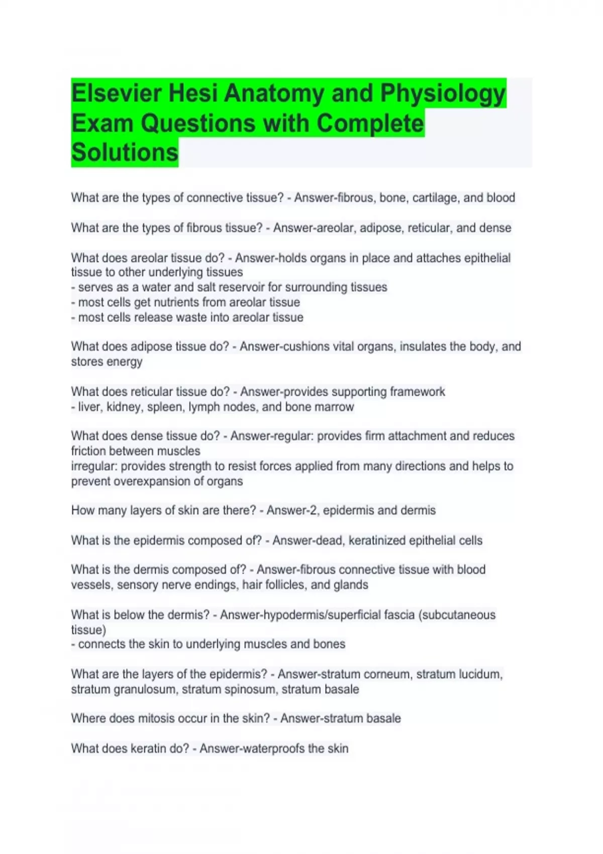Elsevier Hesi Anatomy and Physiology Exam Questions with Complete Solutions