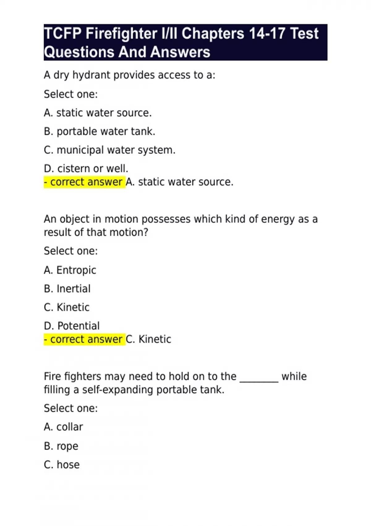 TCFP Firefighter I/II Chapters 14-17 Test Questions And Answers