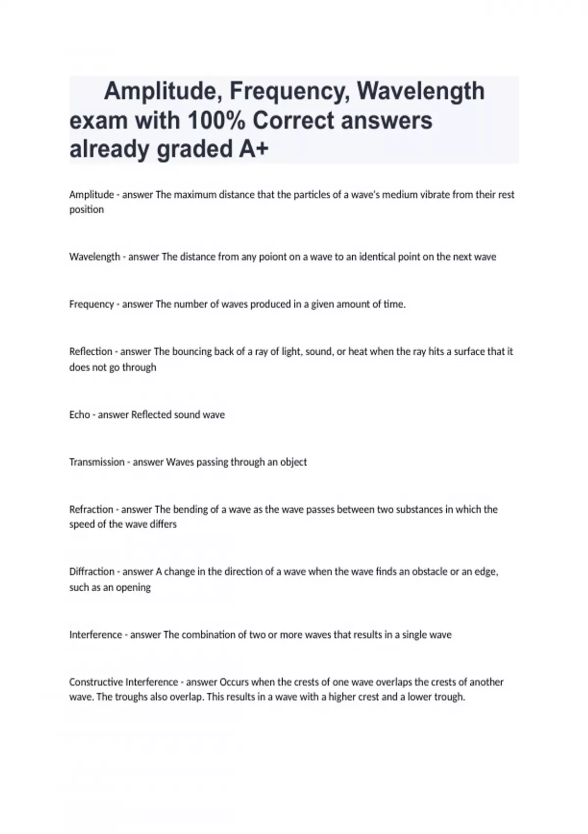 Amplitude, Frequency, Wavelength exam with 100% Correct answers already graded A+