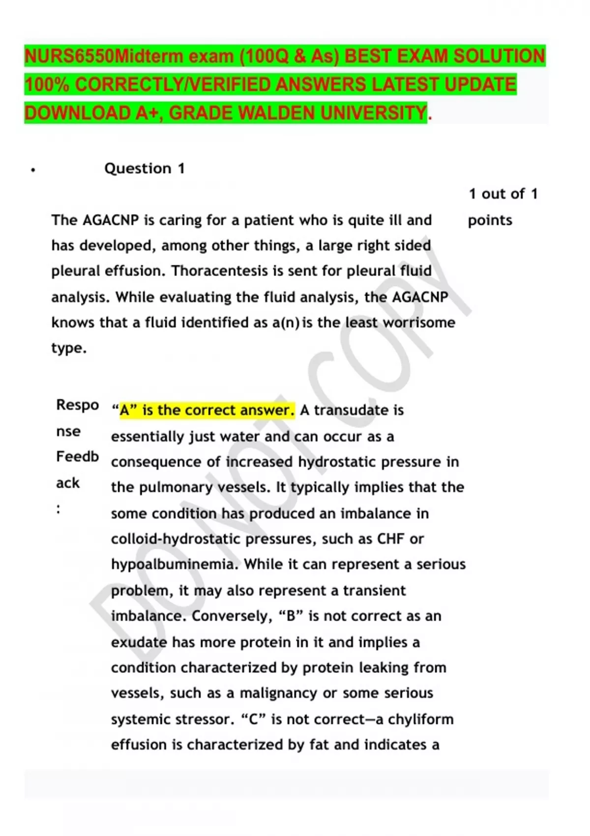 NURS6550Midterm exam (100Q & As) BEST EXAM SOLUTION 100% CORRECTLY/VERIFIED ANSWERS LATEST UPDATE DOWNLOAD A+ GRADE WALDEN UNIVERSITY