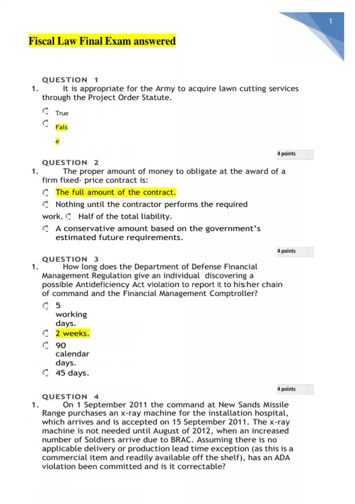 Fiscal Law Final Exam questions with correct answers graded A+/Fiscal Law Final Exam questions with correct answers graded A+/Fiscal Law Final Exam questions with correct answers graded A+