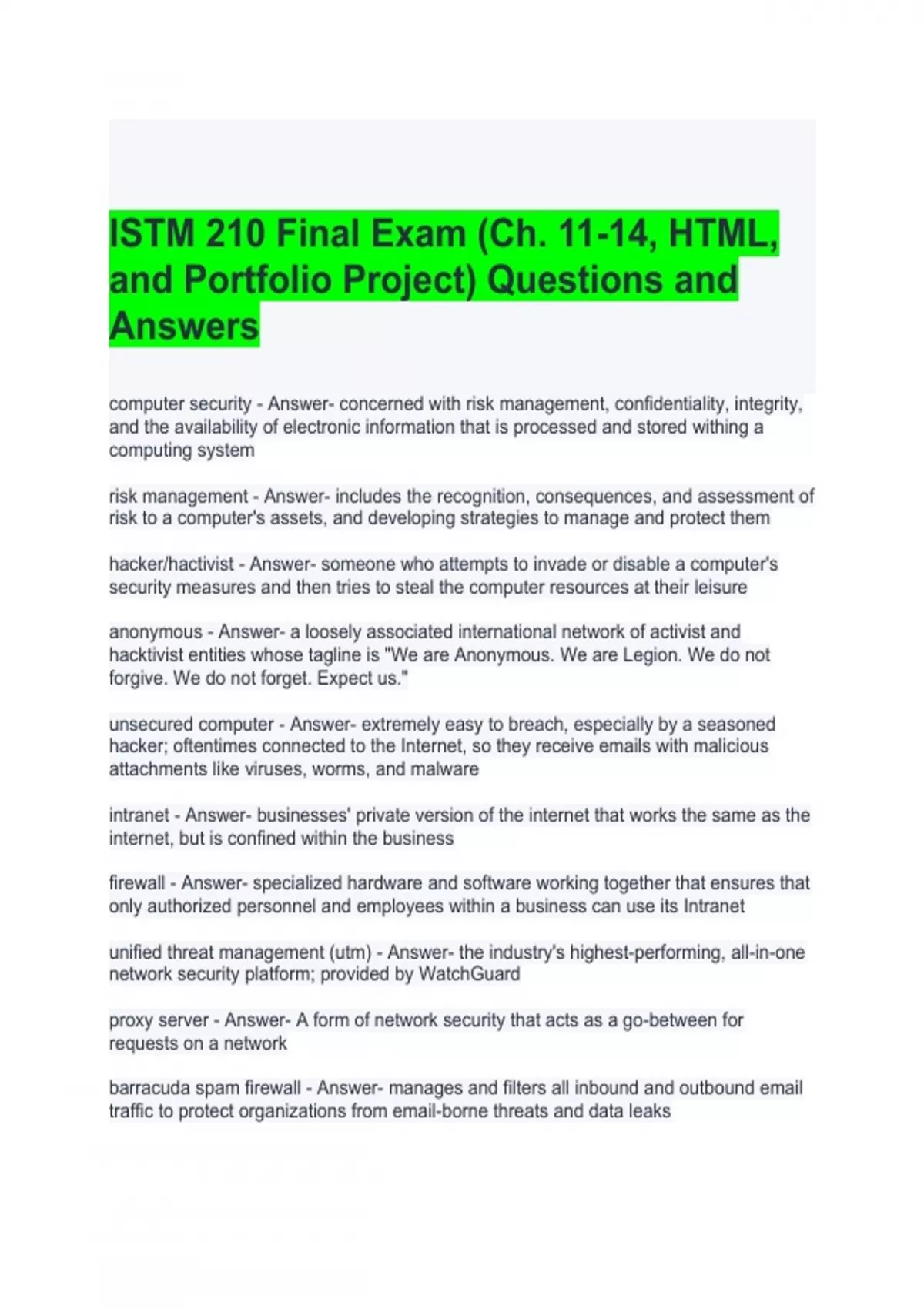 istm 210 final exam ch 11 14 html and portfoli