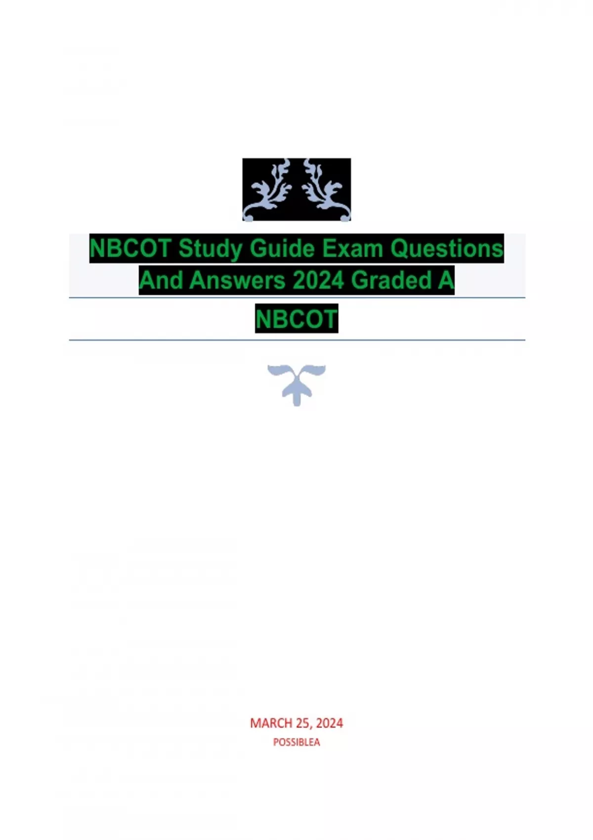 NBCOT Study Guide Exam Questions And Answers 2024 Graded A