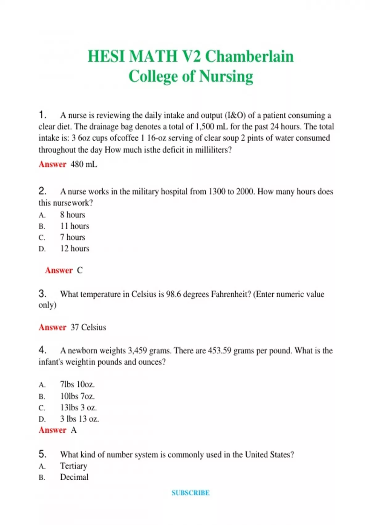 2024 HESI MATH V2 Chamberlain College of Nursing Questions and Answers (Verified Answers)