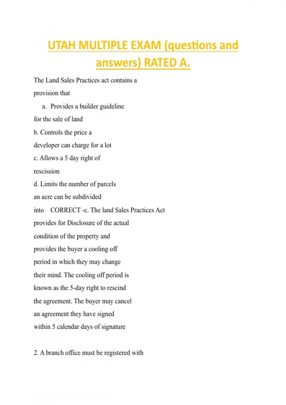 UTAH MULTIPLE EXAM (questions and answers) RATED A.