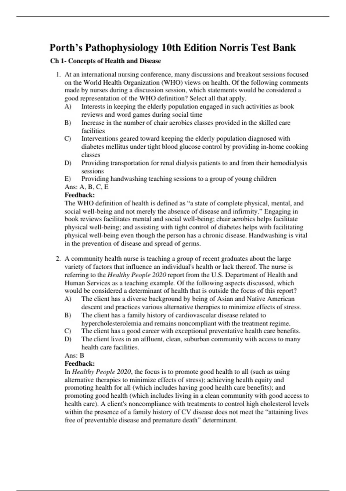 Test Bank Porth’s Pathophysiology Concepts of Altered Health 10th Edition Norris - All Chapters | A+ ULTIMATE GUIDE 2022