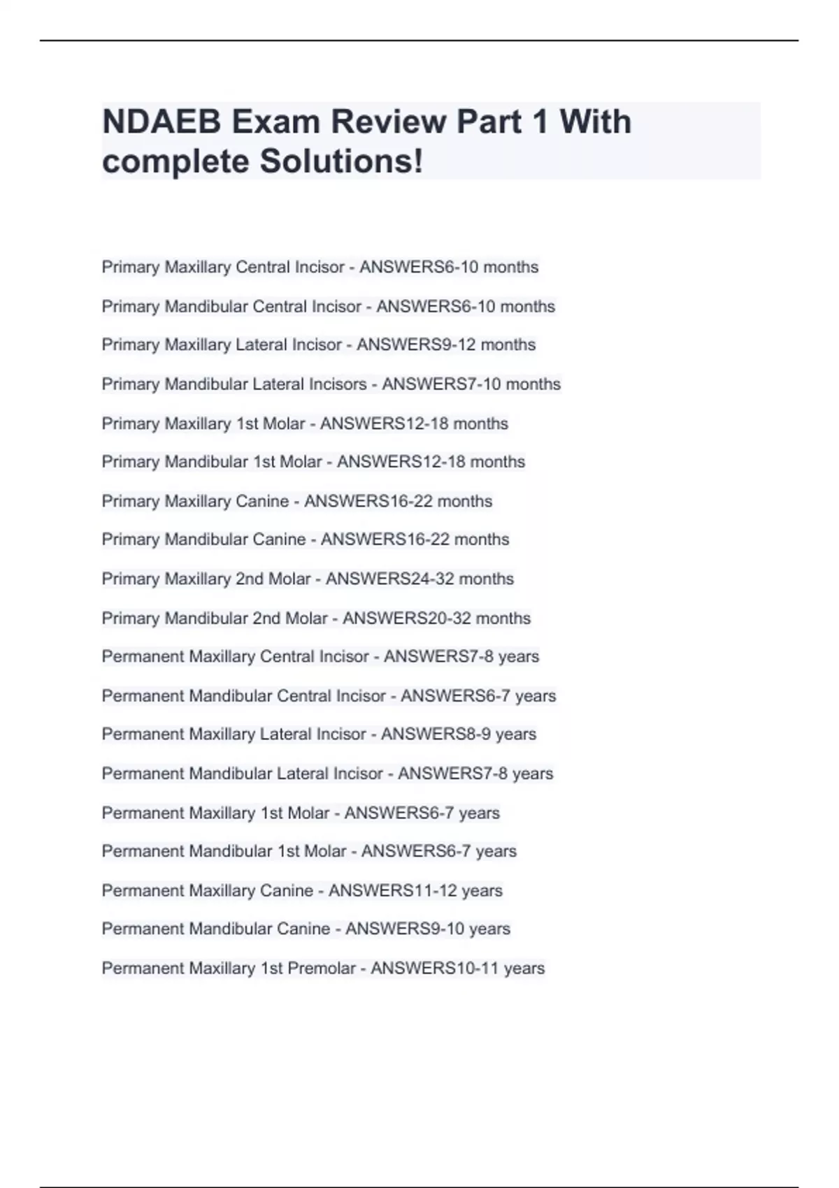 NDAEB Exam Review Part 1 With complete Solutions!