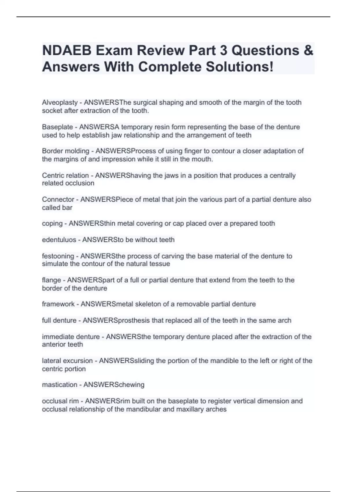 NDAEB Exam Review Part 3 Questions & Answers With Complete Solutions!