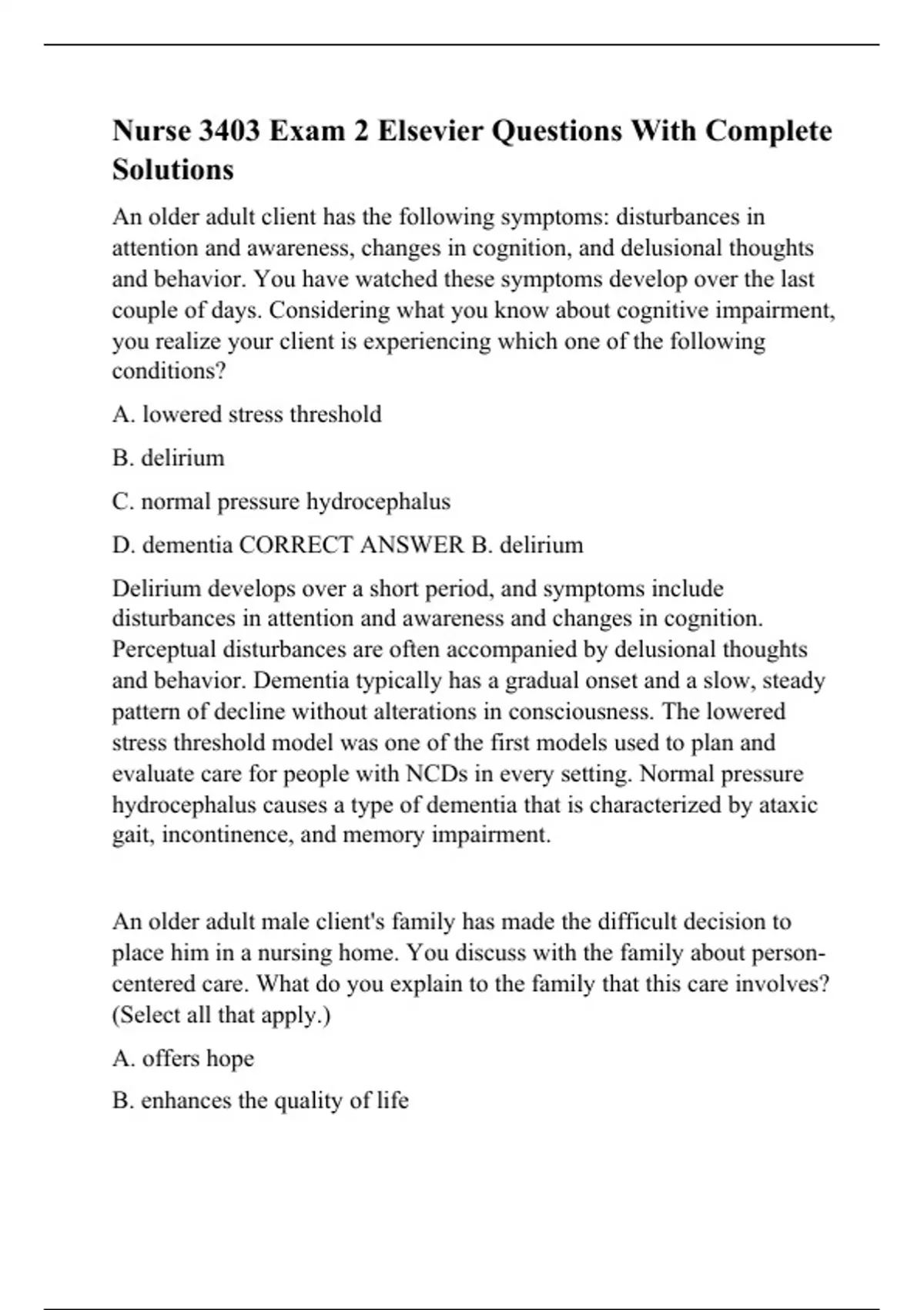 Nurse 3403 Exam 2 Elsevier Questions With Complete Solutions
