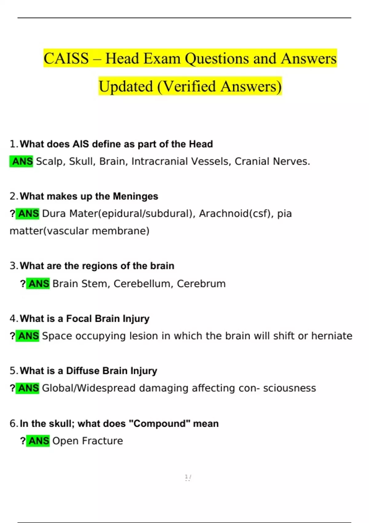 caiss head exam course hero