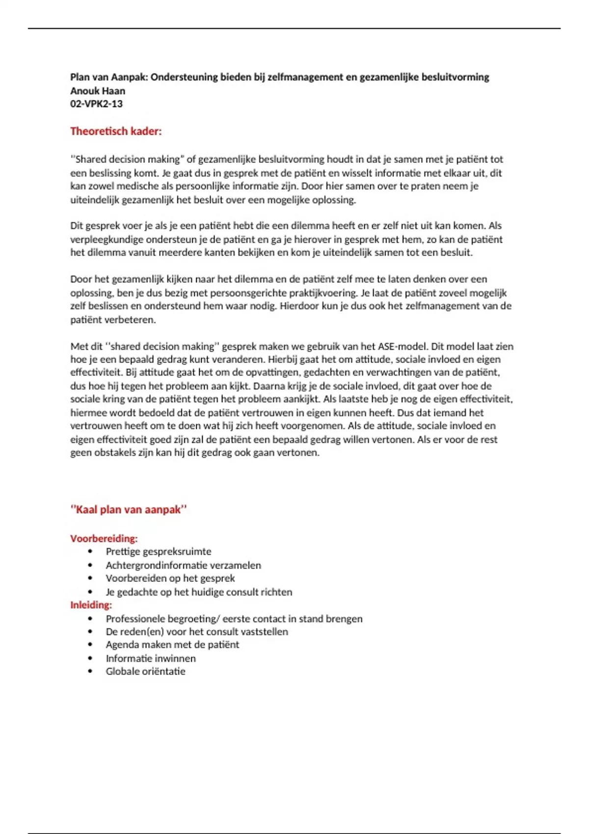 een beslissing komt. Je gaat dus in gesprek met de patiënt en wisselt informatie met elkaar uit, dit