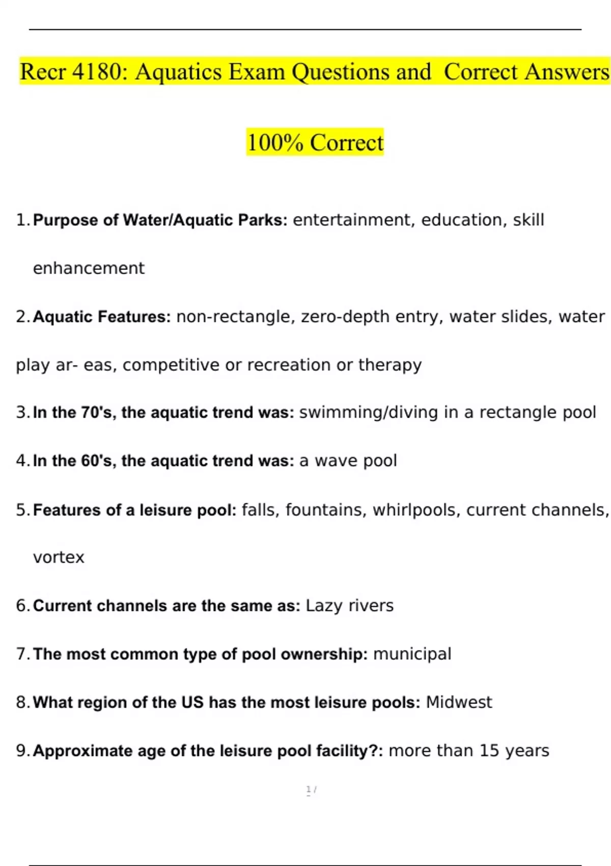 Recr 4180: Aquatics Exam Questions and Answers 100% Correct