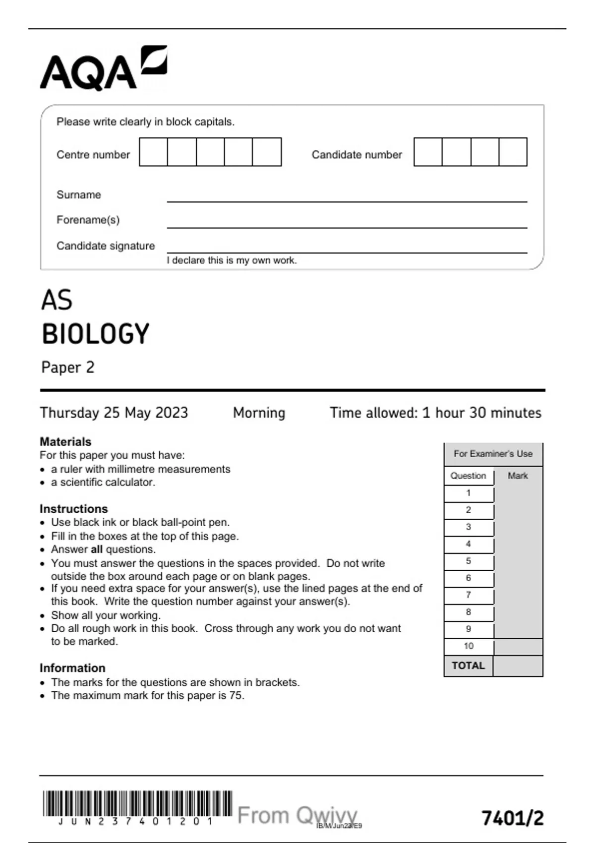 - 2023 AQA AS BIOLOGY PAPER 2 QUESTION PAPER AND MAR