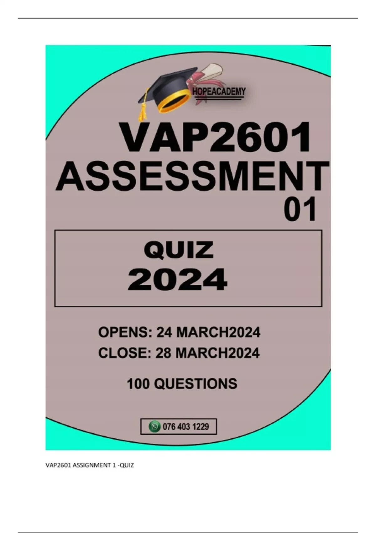 VAP2601 ASSIGNMENT 1 -QUIZ