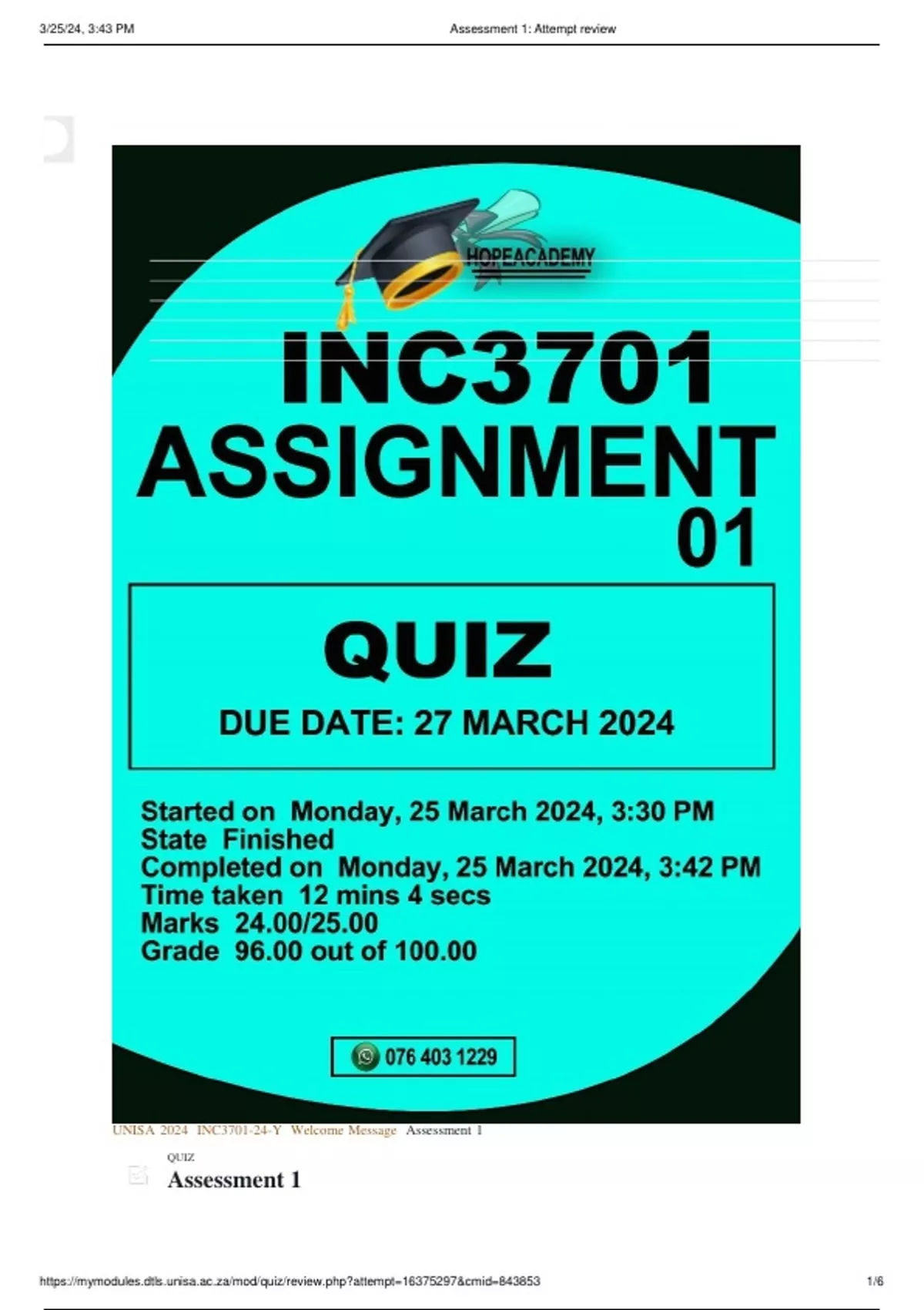 UNISA 2024 INC3701-24-Y Welcome Message Assessment 1