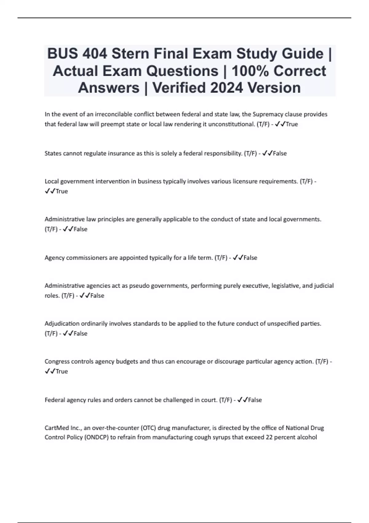 BUS 404 Stern Final Exam Study Guide | Actual Exam Questions | 100% Correct Answers | Verified 2024 Version