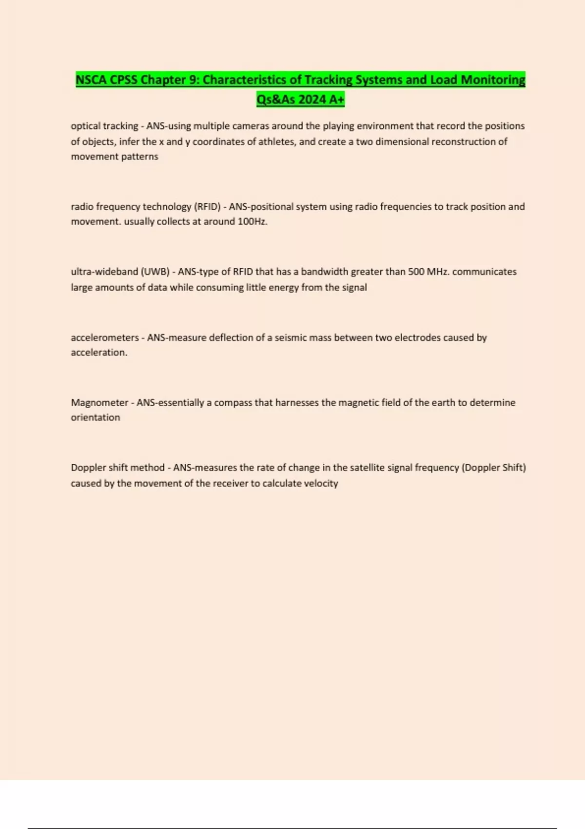 NSCA CPSS Chapter 9: Characteristics of Tracking Systems and Load Monitoring Qs&As 2024 A+
