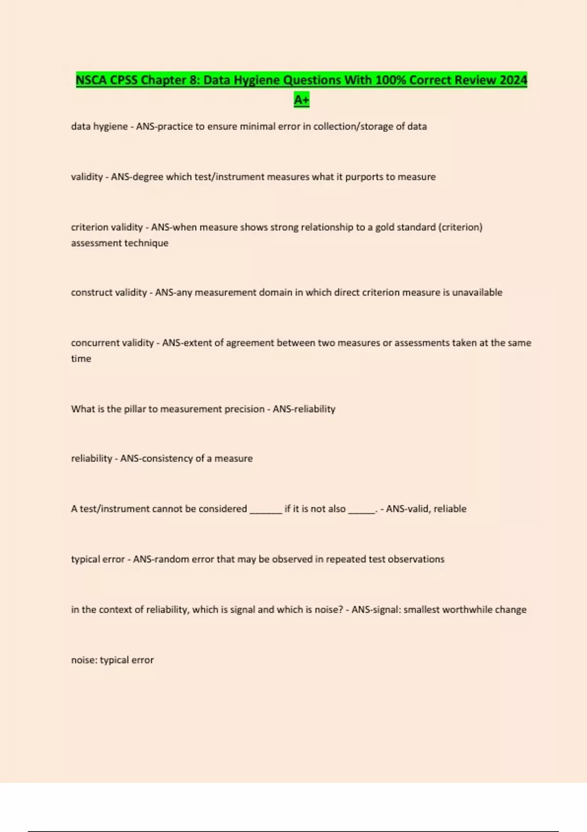 NSCA CPSS Chapter 8: Data Hygiene Questions With 100% Correct Review 2024 A+