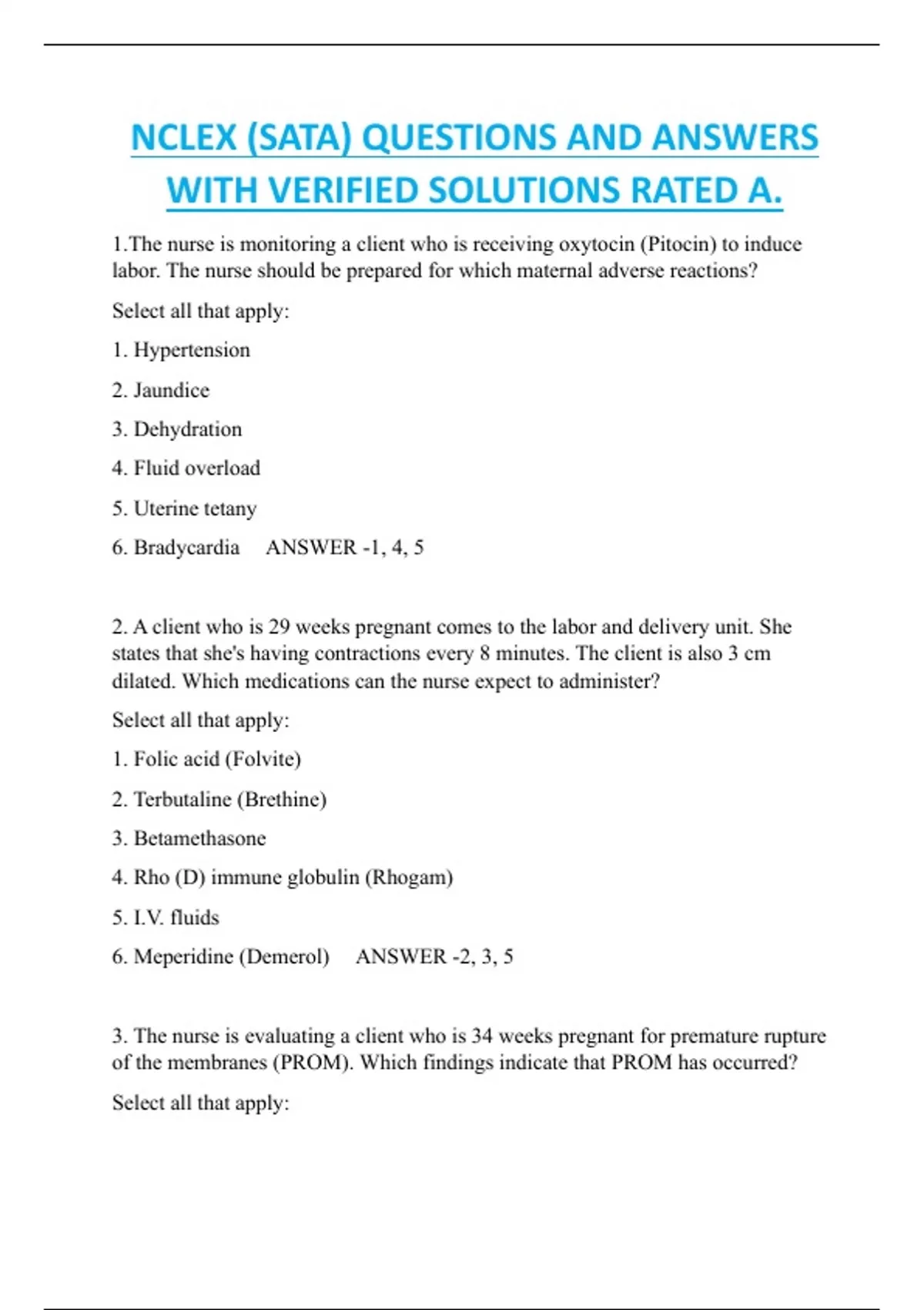 NCLEX (SATA) QUESTIONS AND ANSWERS WITH VERIFIED SOLUTIONS RATED A.