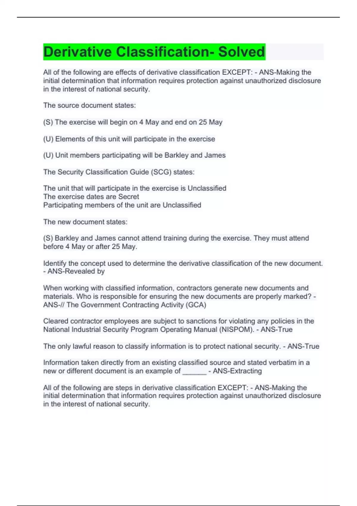 Derivative Classification Exams Package Deal -Solved