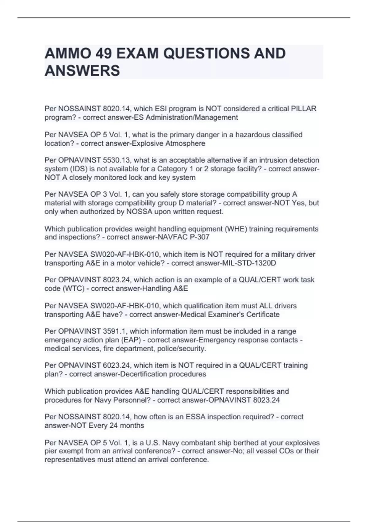 AMMO 49 EXAM QUESTIONS AND ANSWERS