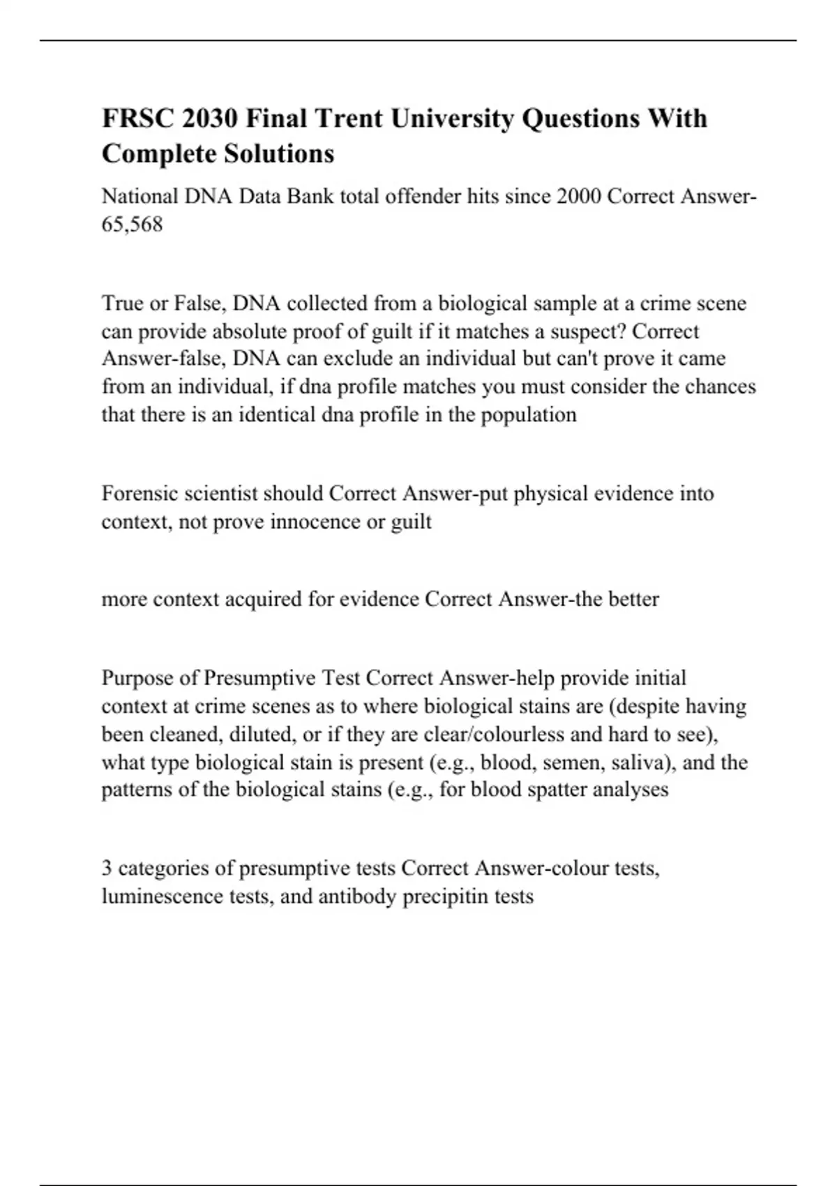 FRSC 2030 Final Trent University Questions With Complete Solutions