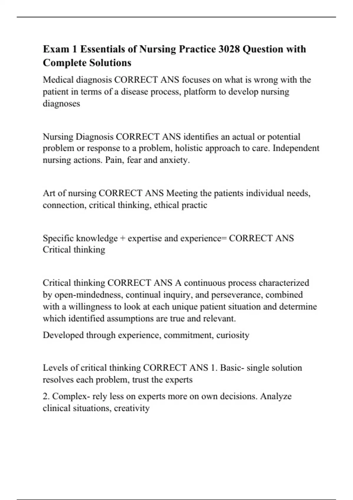 Exam 1 Essentials of Nursing Practice 3028 Question with Complete Solutions