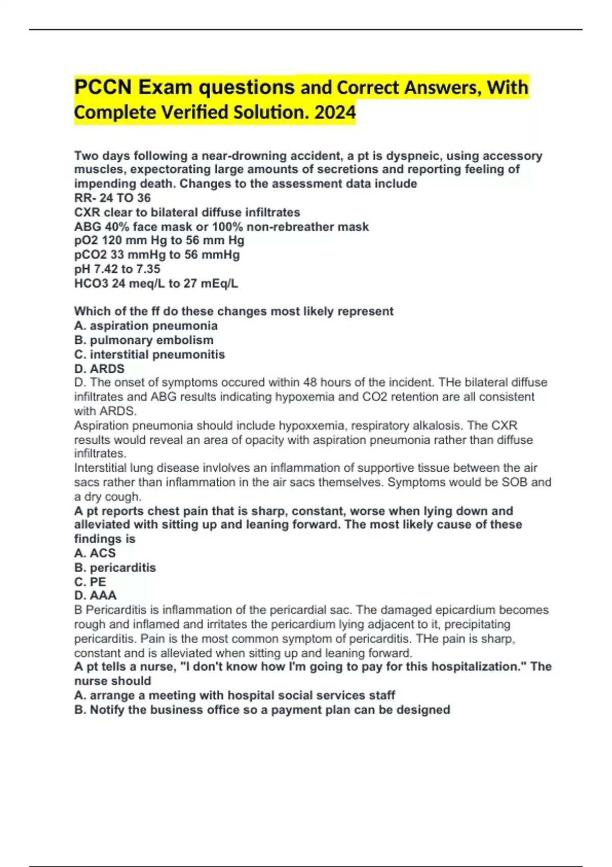 alleviated with sitting up and leaning forward. The most likely cause of these