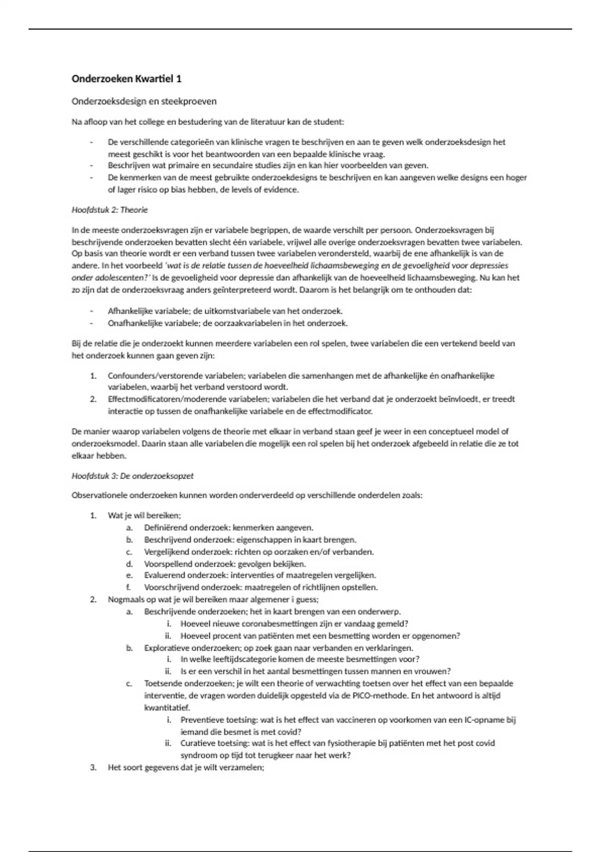 Samenvatting aan de hand van de colleges en de daarbij horende verplichte literatuur vanuit het boekje Onderzoek in de gezondheidszorg.