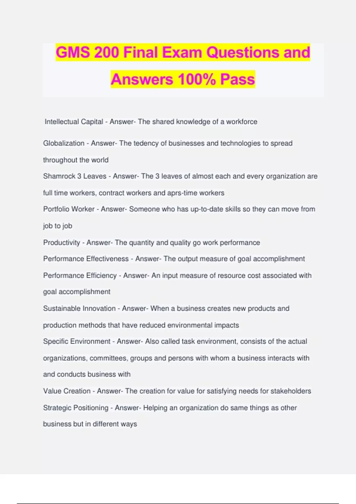 GMS 200 Final Exam Questions and Answers 100% Pass