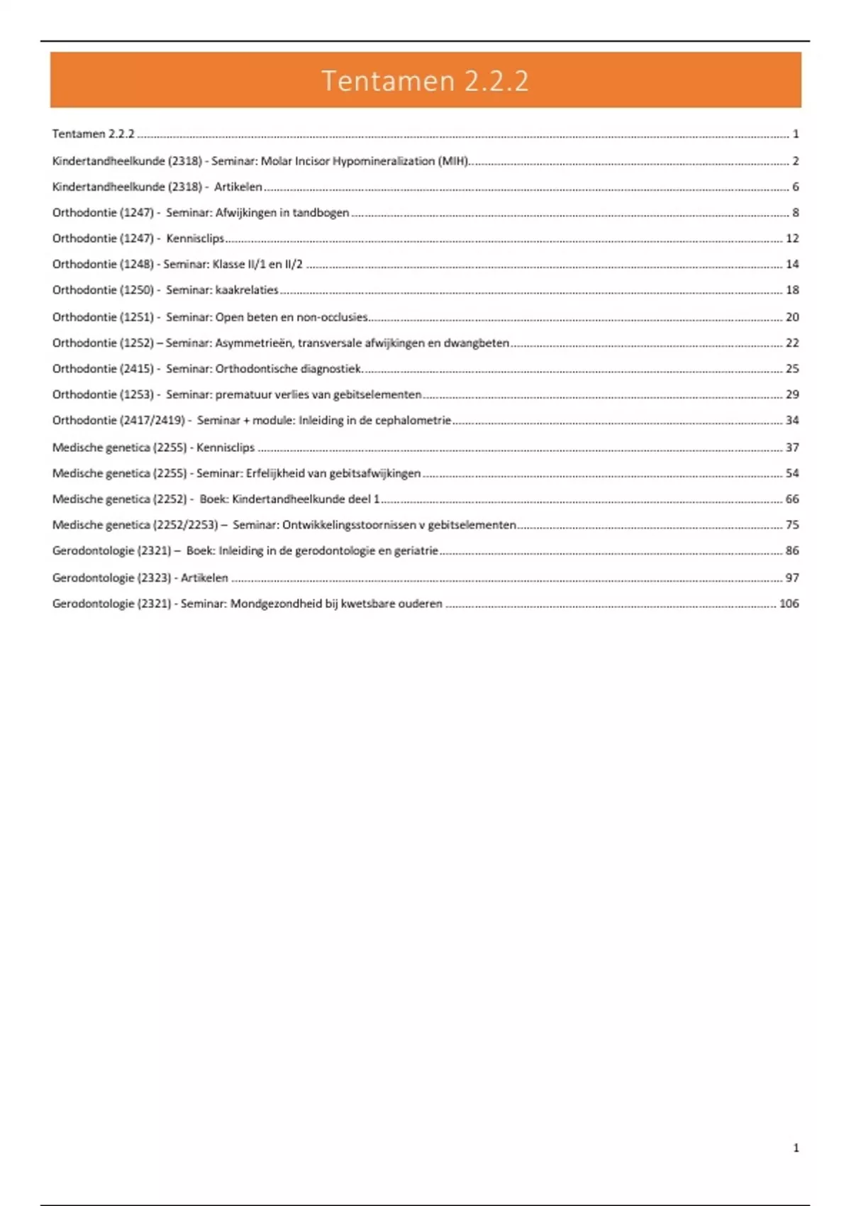 Medische genetica (2255) - Seminar: Erfelijkheid van gebitsafwijkingen ............................................................................................................... 54