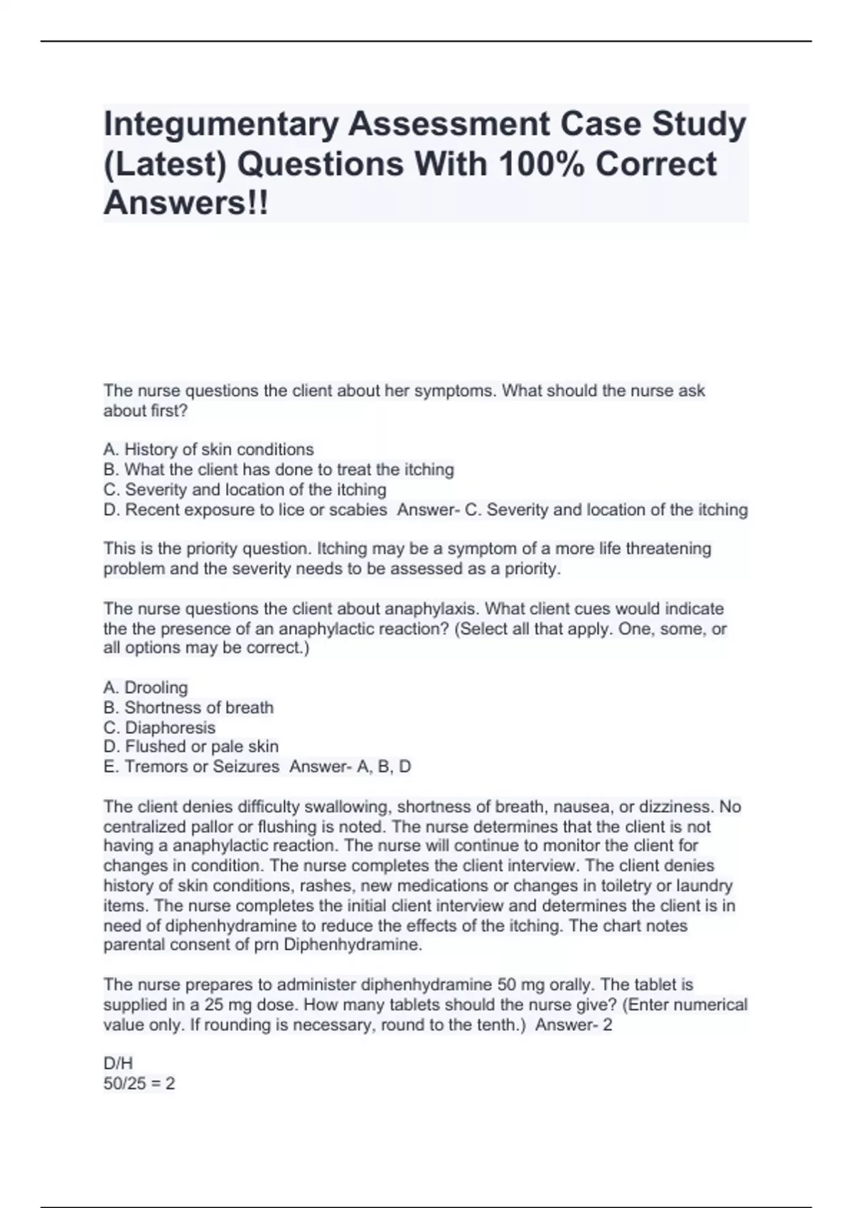 Integumentary Assessment Case Study (Latest) Questions With 100% Correct Answers!!