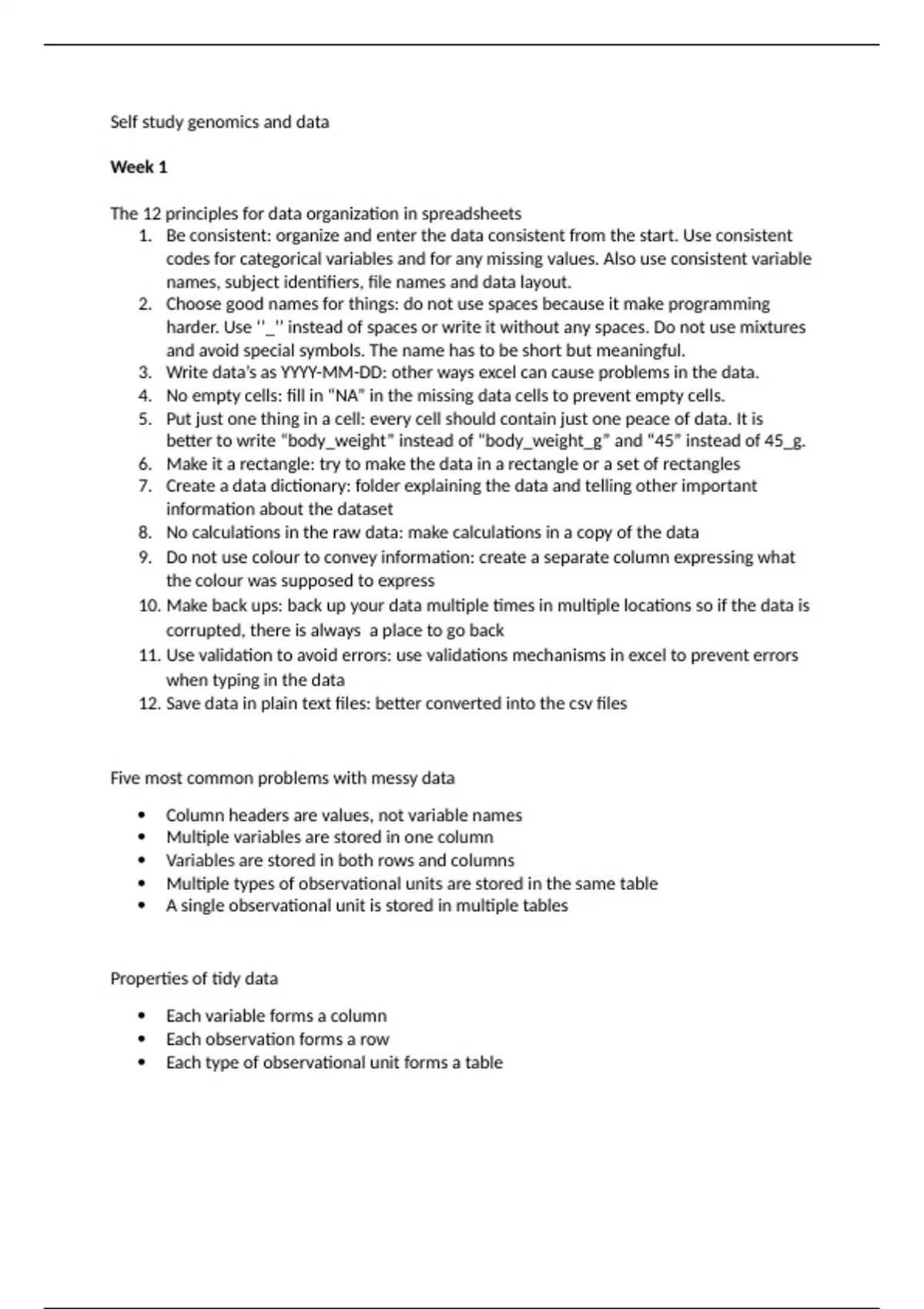 1. Be consistent: organize and enter the data consistent from the start. Use consistent