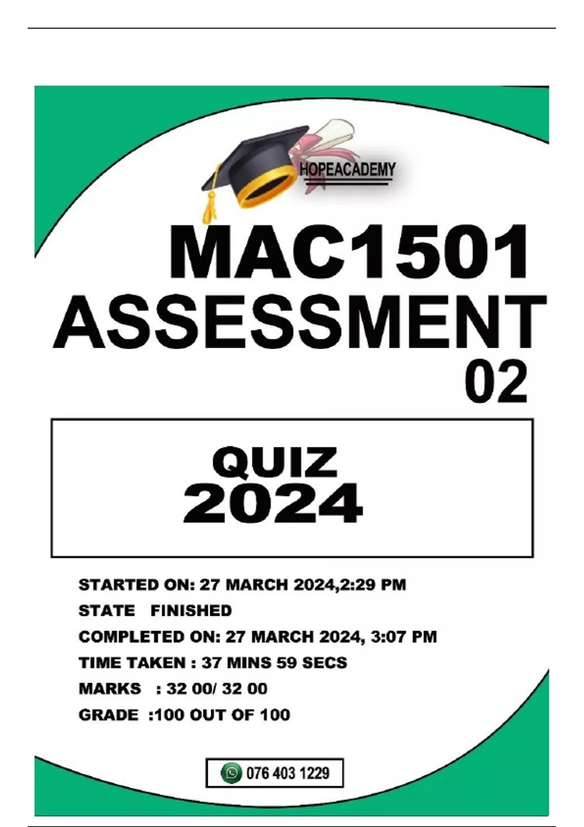 MAC1501 ASSIGNMENT 2 -QUIZ 2024 ALL QUESTIONS WELL ANSWERED