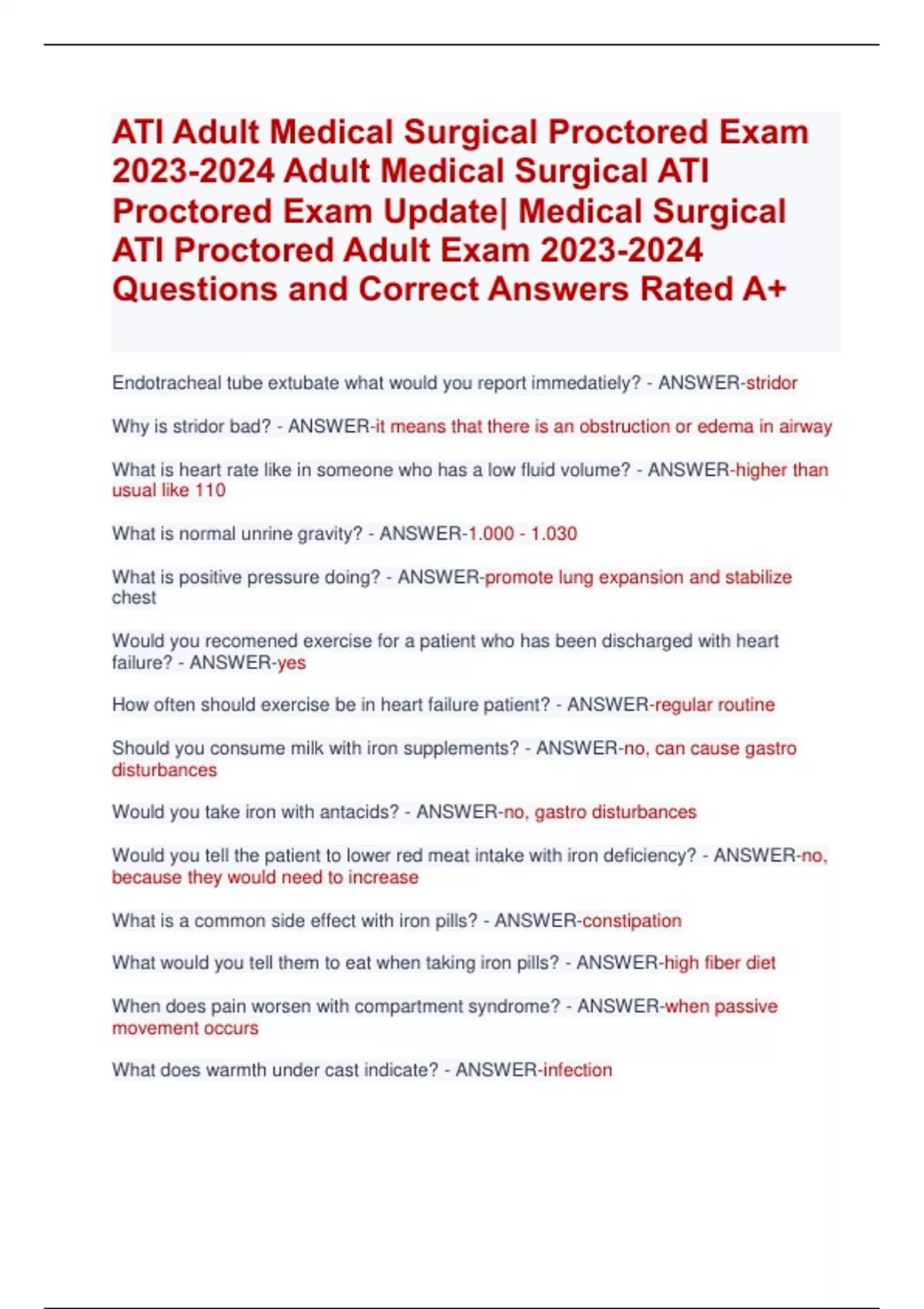 ATI Adult Medical Surgical Proctored Exam Adult Medical Surgical ATI Proctored Exam Update| Medical Surgical ATI Proctored Adult Exam Questions and Correct Answers Rated A+