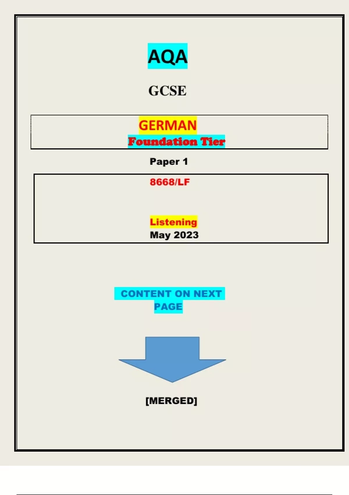 AQA GCSE GERMAN Foundation Tier Paper 1 8668/LF Listening