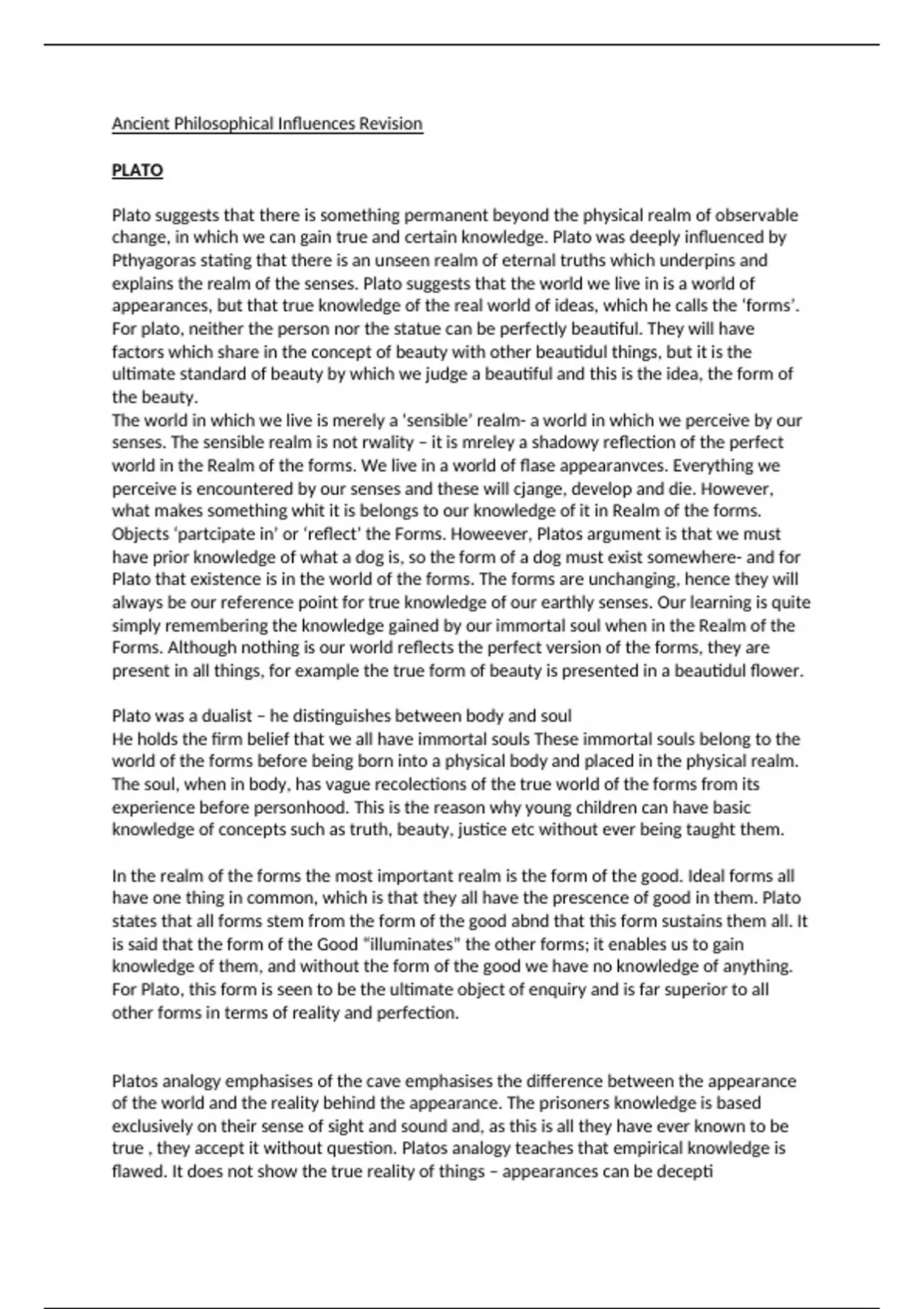 senses. The sensible realm is not rwality – it is mreley a shadowy reflection of the perfect