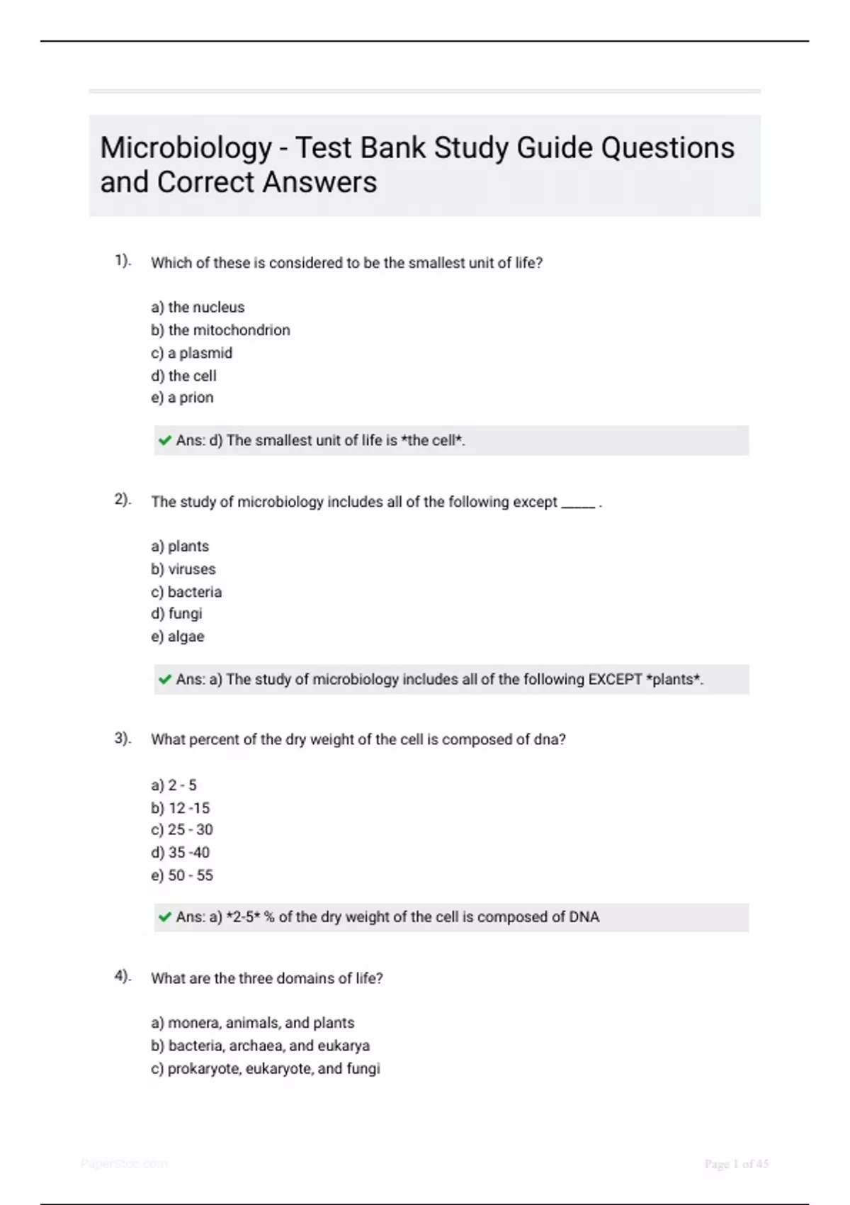 Ans: a) *2-5* % of the dry weight of the cell is composed of DNA