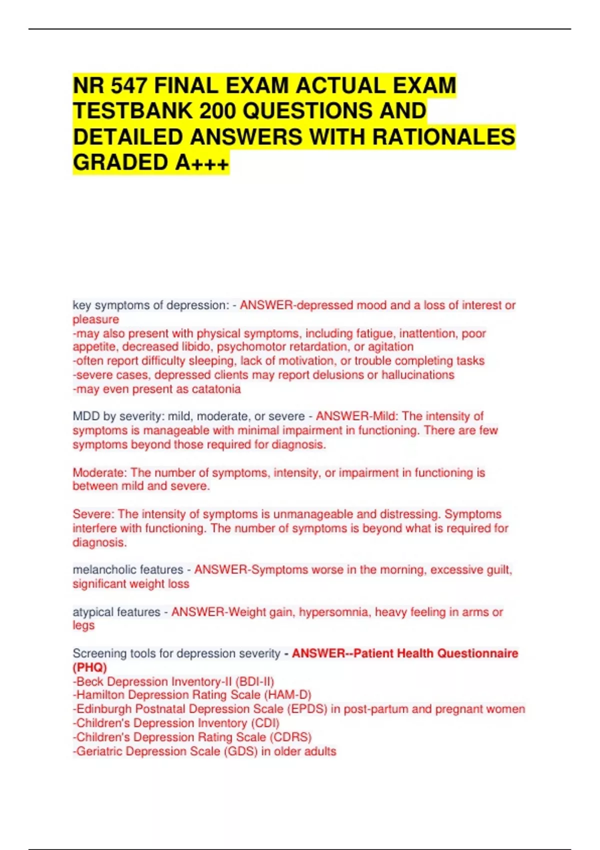NR 547 FINAL EXAM ACTUAL EXAM TESTBANK 200 QUESTIONS AND DETAILED ANSWERS WITH RATIONALES GRADED A+++
